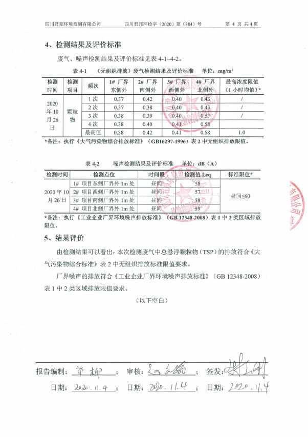 自行检测完成情况相关材料——乐动体育-乐动(中国)-乐动(中国) 2020年污染源检测报告
